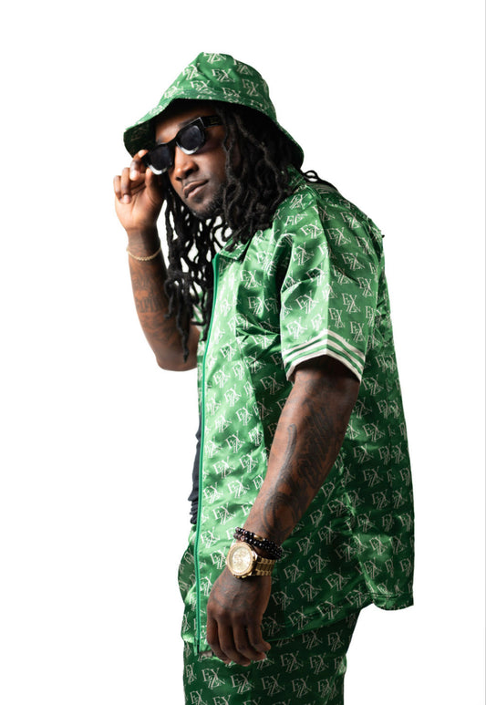 EZY| Green/Tan Satin Full Zip(Shirt only)